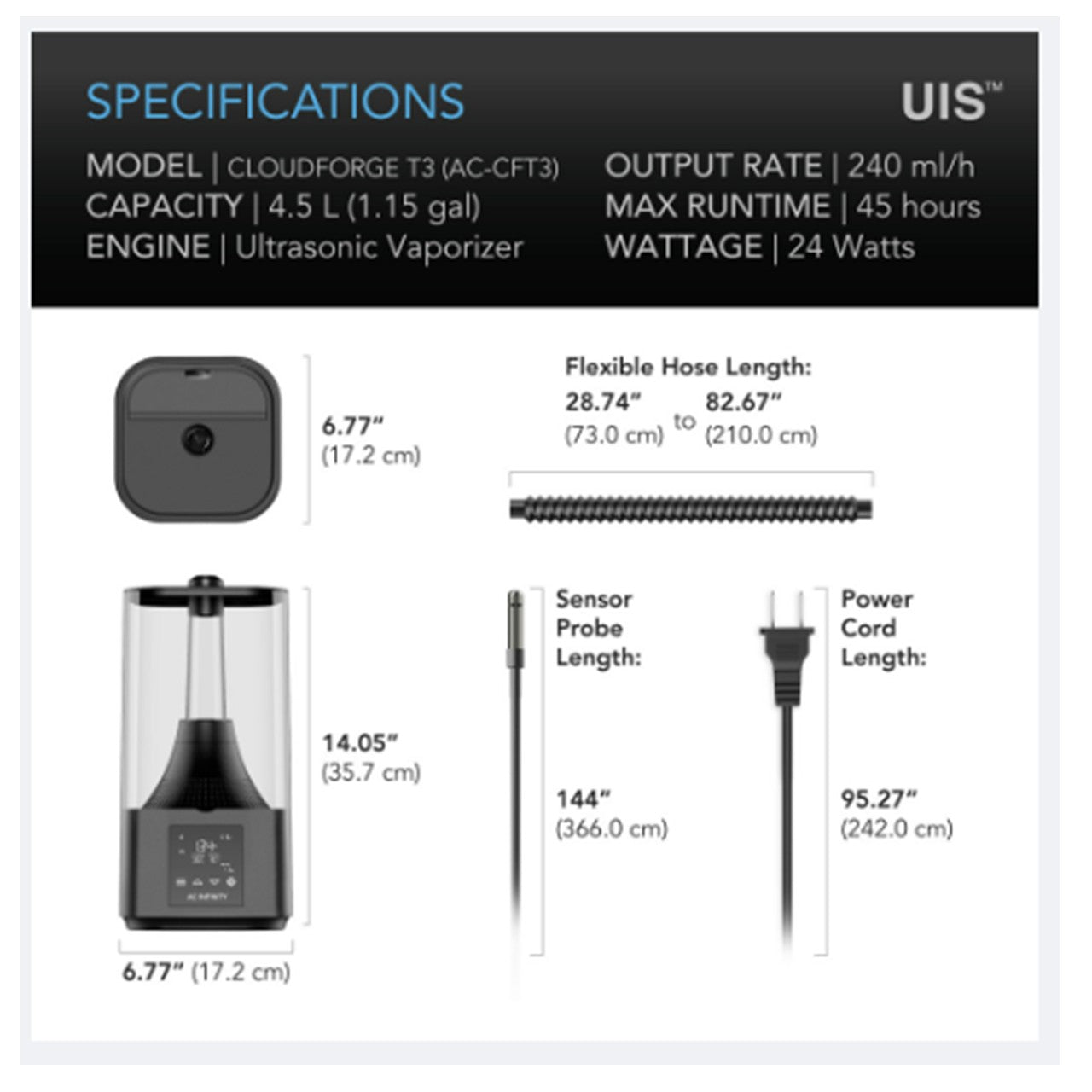 CLOUDFORGE T3, Environmental Plant Humidifier, 4.5L, Smart Controls, Targeted Vaporizing